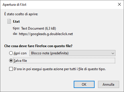 rieges Premetto che non so se mi conviene aprire una nuova discussione. Da questa mattina alcune pubblicità sul forum mi stanno facendo scaricare file .txt a random. Nel dubbio da una macchina virtuale ho scaricato il file e analizzato su VirusTotal e non sembra essere qualcosa di pericoloso. Non so se sia una pubblicità mal implementata/un errore del mio browser o qualcos'altro. Se vi serve ho caricato il contenuto del file su Pastebin https://pastebin.com/rqYpkekp