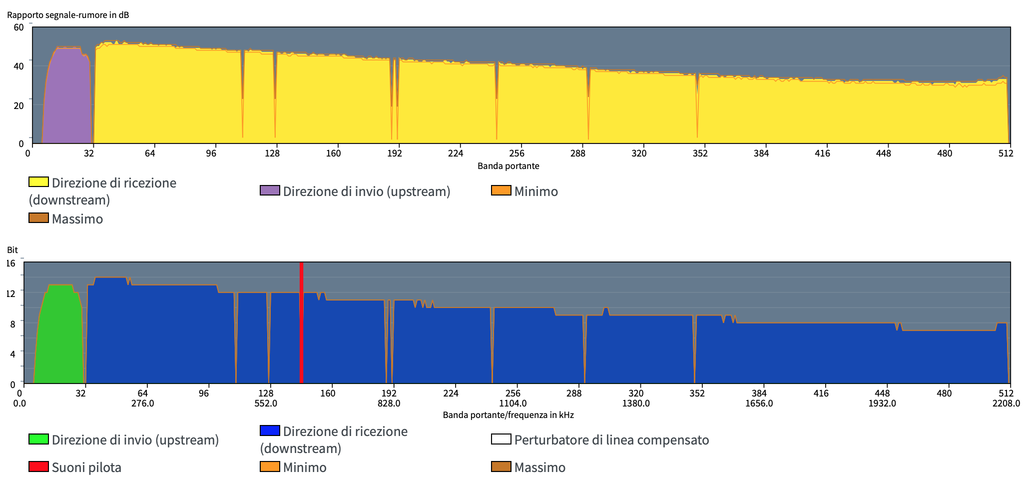 Portante 17.7/1.127 Mbps, attenuazione 18/10 dB, SNR 6 dB