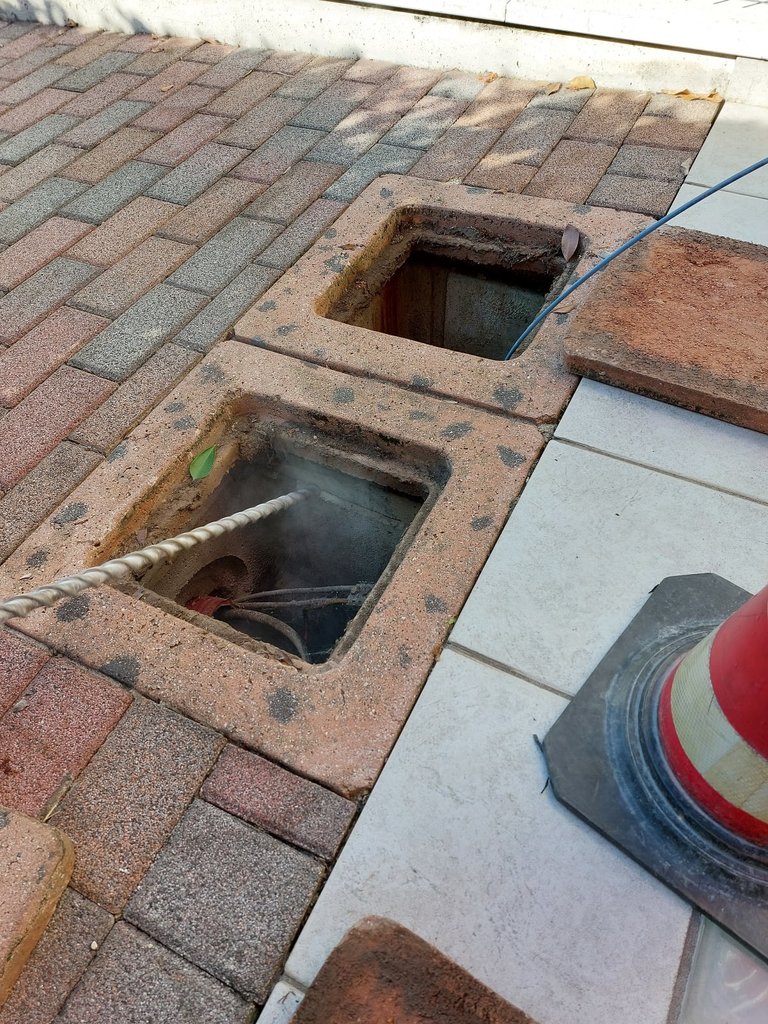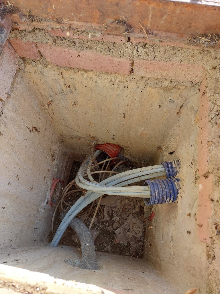 Successivamente la linea enel passa per il pozzetto di terra,da qui altro foro a martello pneumatico verso il pozzetto telecom in proprietà privata