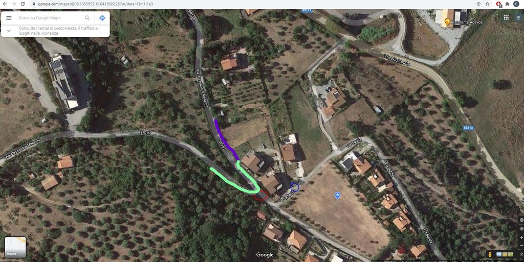 La traccia blu è la fibra, che immagino passi su pali. Pare che si diriga verso la località "Scala" che invece a differenza della tua è stata collegata in ftth. Se da te non hanno messo ROE o pozzetti temo che non ci sia niente da fare. Ora, se non installeranno una bts fwa nel tuo comune per coprire anche le vostre case, temo che finirai per essere una di quelle ui che sono rimaste fuori dalla copertura del piano. È assurdo lo so...
