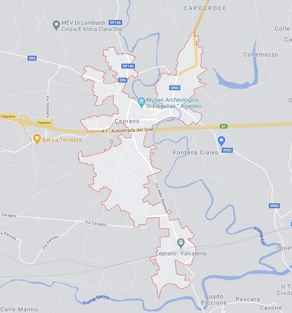 Tutte le strade che hai citato sono fuori dal centro abitato. Per centro abitato non si intende l'intero territorio comunale bensì l'area che in genere viene delimitata dai cartelli su fondo bianco, indicata in foto entro i confini rossi (basta cercare "Ceprano" generico su Google Maps):