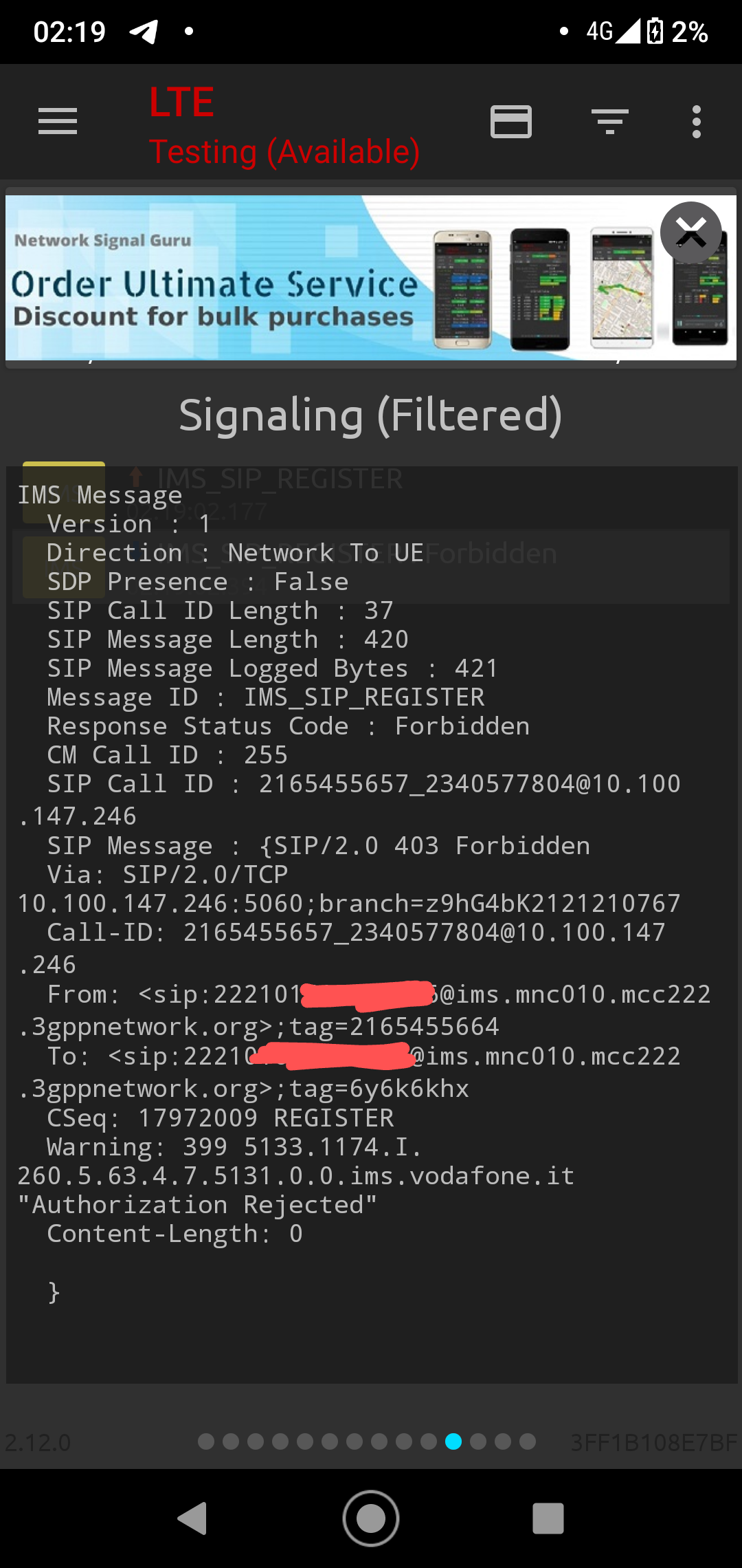 Puoi confermare che il "403 Unauthorized" lo da proprio in caso di IMEI non whitelistato? Per un sacco di tempo ho provato a giocare a modificare i PDC, a sostituire lo User-Agent inviato nel SIP REGISTER con quello di un telefono compatibile... Ma niente, sempre 403!