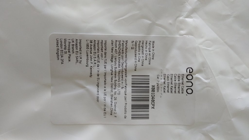 E' marchiato CAT7 (vedi foto) , viene in una busta piuttosto anonima con la sola etichetta che vedete nella foto sotto.