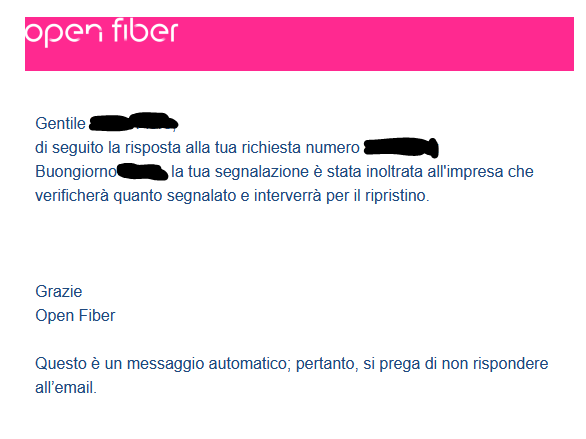 lollapalooza MatteoK Non li fa mica infratel i piani ma gli operatori vari, magari c'è stato un errore di trascrizione ma di certo non possono telefonare a OF (ad esempio) e dire "no voi coprite anche il civico 12" Ho scritto io ad OF :-) Tramite il "contattaci" sul sito. Ecco cosa mi hanno risposto: