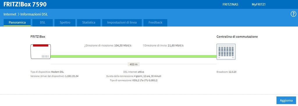 Io, a mio svantaggio, ho solo i 400m che mi separano dalla centralina, per il resto ho un Fritz!Box 7590, una casa con impianto nuovissimo, linae da casa a centralina con circa 2/3 anni e centralina installata nel 2019. Diciamo che è quasi tutto "nuovo"!