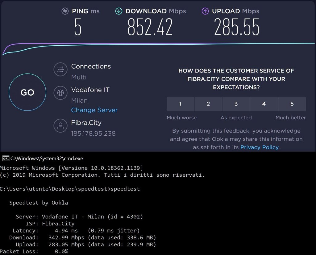 andre99818 Ho provato anche a fare uno speed test direttamente dall'app speedtest che si scarica dallo store di microsoft ed i risultati rispecchiano lo speedtest da terminale