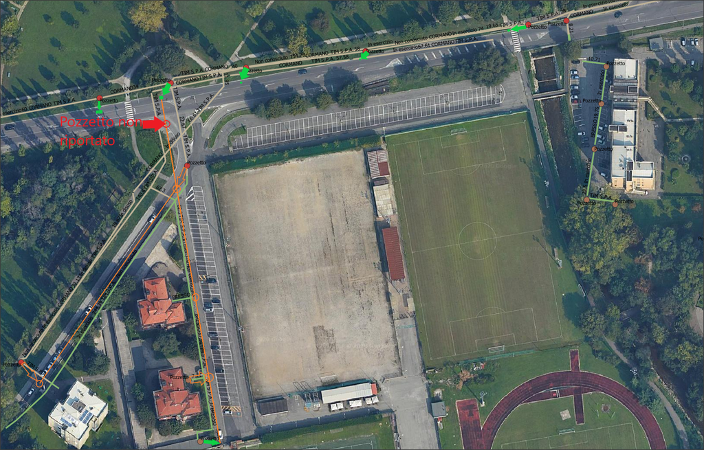 - In arancione è dove penso sia il tracciato e posizione reale dei pozzetti