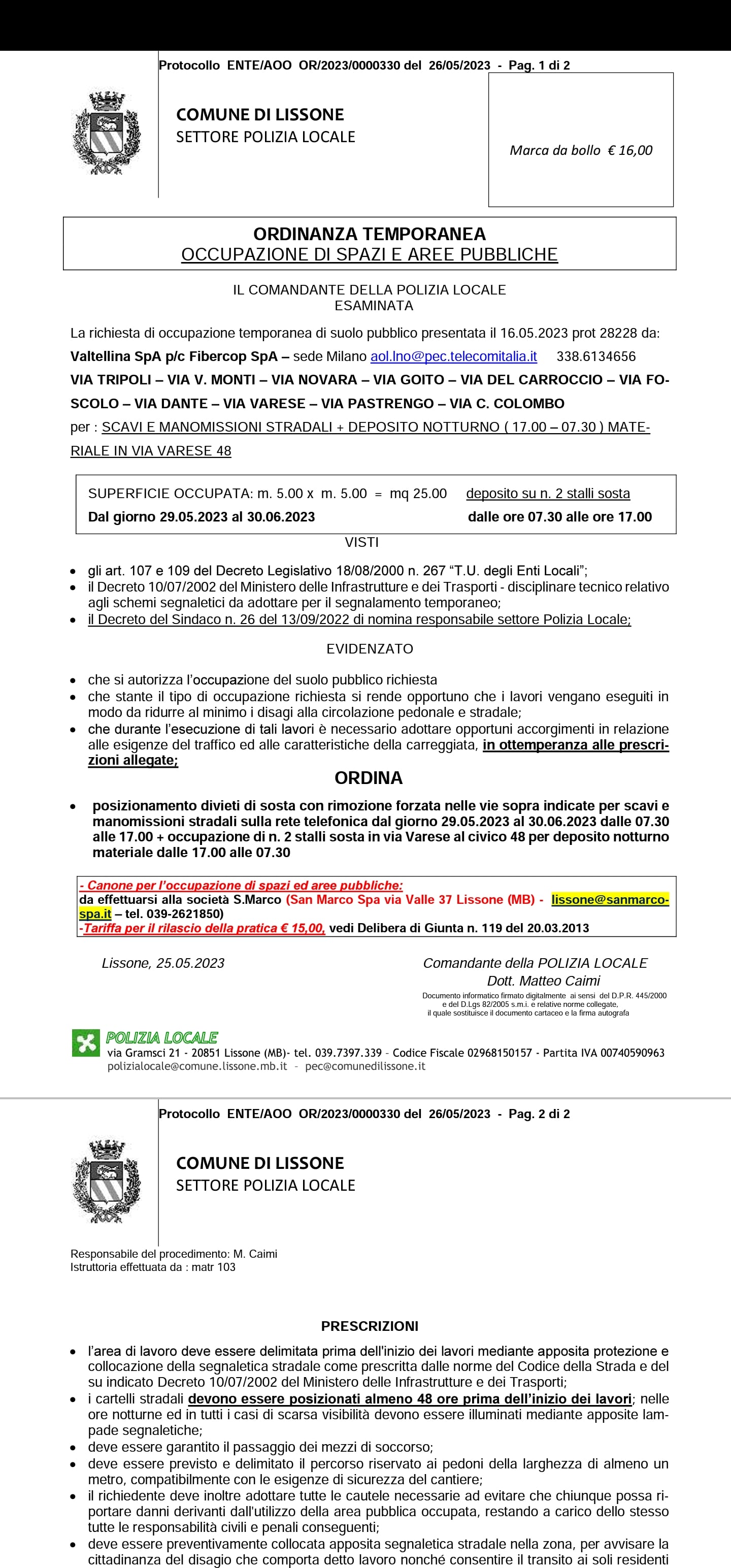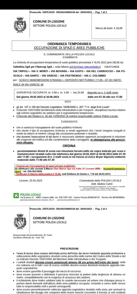 Altra delibera relativa a Fibercop, sempre su Desio (mi ero perso quella di settimana scorsa), a partire da domani 26 maggio.