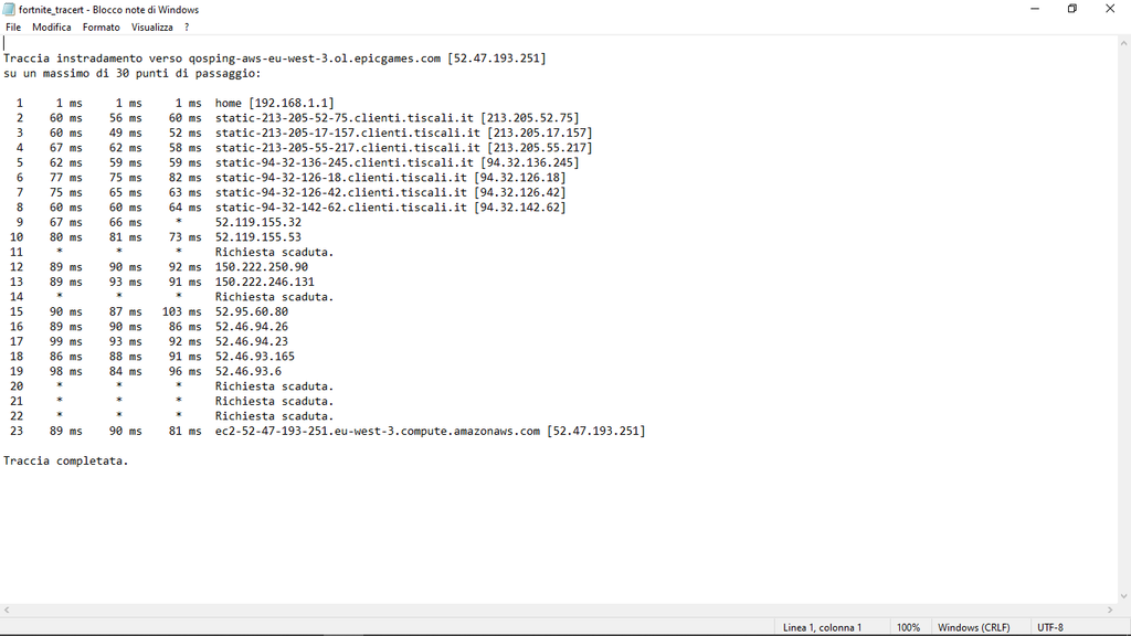 Secondo test, ore 18:45, qui iniziano già ad esserci i primi problemi.