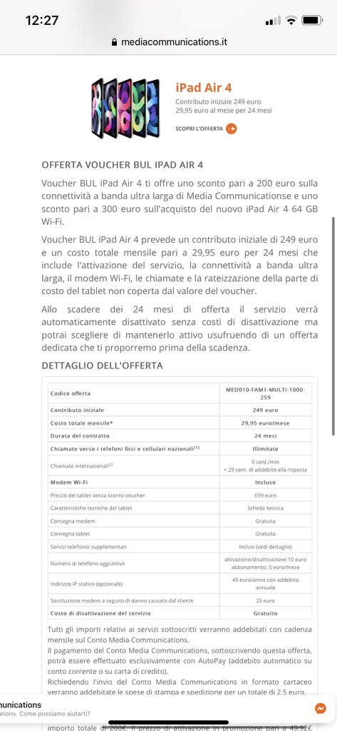 Babyy Ragazzi qualcuno potrebbe aiutarmi?? Vorrei usufruire del bonus e avevo visto l’offerta con media communications, perché ero interessata a prendere iPad, qualcuno sa darmi qualche informazione?? [cancellato] per caso potresti aiutarmi?