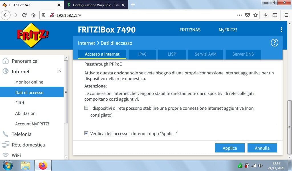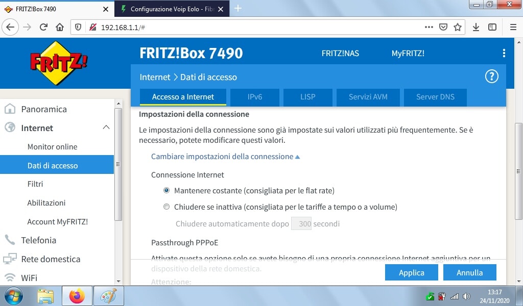 FulvioPareti selezioni altro operatore. Inserisci nella prima casella EVA... che ti avrà fornito EOLO, nella casella numero Fritzbox inserisci il tuo numero telefonico comprensivo di prefisso.