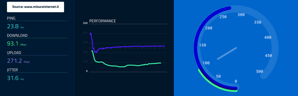sono su tiscali rete OF da gennaio 2020. all'inizio arrivavo a scaricare ad 850, velocità che è andata a peggiorare sempre di più. stasera non raggiungo nemmeno i 100 mbps (ho provato anche con misurainternet, questi i valori)