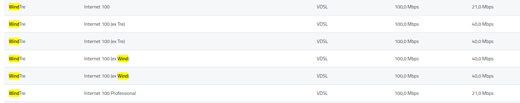 Specifico che le prime fatture arrivano difatti a nome Wind, mentre il 13/03/2020 ricevo una mail in cui vengo informato che "dall'unione di Wind e 3 nasce WindTre" e le bollette successive arrivano a nome WindTre. Questo dettaglio è importante perché secondo il sito misurainternet.it la velocità minima contrattuale per il servizio "Internet 100 (ex Wind)" è 40mb in download, mentre per "Internet 100 WindTre" è 20mb.