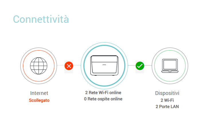 Tuttavia, come si può notare dall'imagine che segue, dal pannello di controllo del modem Zyxel non risulta connessione ad Internet: