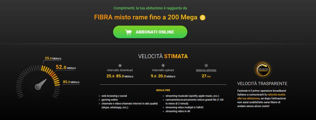 Attualmente a casa abbiamo una ADSL Fastweb che va a 4 mega quando siamo fortunati, dalla mia area personale del sito mi dice che non sono coperto da fibra e quindi non posso richiedere l'upgrade della linea. Però provando a richiedere una nuova linea mi dice invece che sono coperto da fibra misto rame fino a 200 mega. Anche su fibermap il mio indirizzo risulta coperto da fibra.