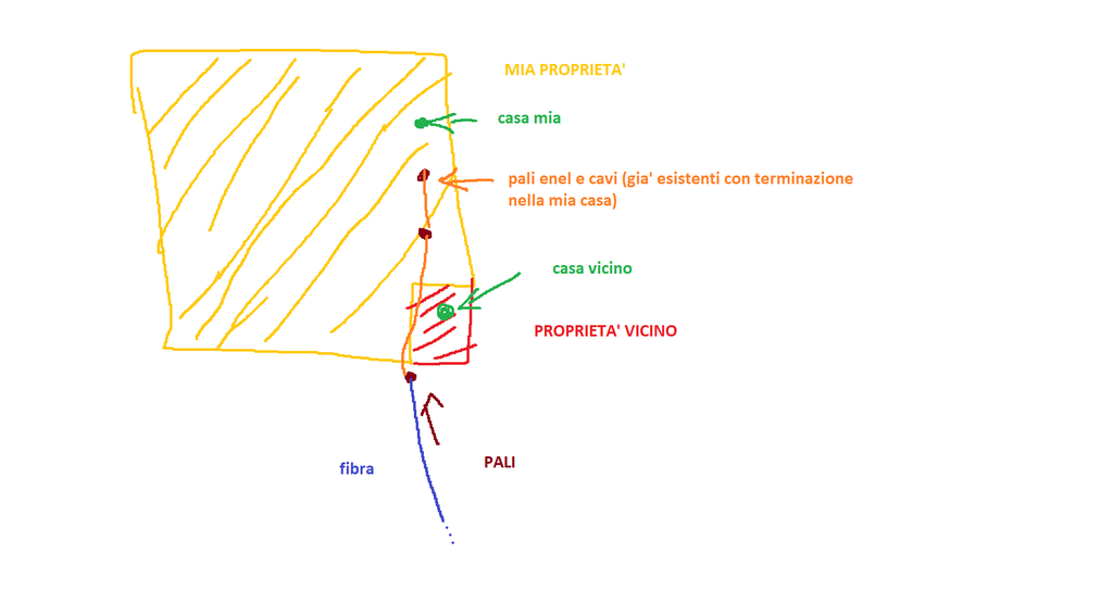 Abito in una zona rurale, ciononostante hanno deciso di cablare dei pezzi, anche se tirando la monetina, praticamente arriva al mio vicino che ha casa letteralmente inglobata nella mia proprieta' se non fosse per l'ingresso che e' suo e si attacca lungo la strada, ma la fibra gliela hanno fatta arrivare tramite palificazione ( che non segue la strada ma passa piu' internamente per terreni) quindi non ha un pozzetto davanti casa ma al massimo un ROE su palo, la stessa palificazione senza fibra continua per 100m e si ferma alla mia abitazione, ma indovinate, non sono raggiunto. Eppure il palo di terminazione fibra (dove installerano un ROE arriva a 2m dal vicino e quindi anche a 2m dal mio terreno, solo che la mia casa poi dista 100m da quel punto.