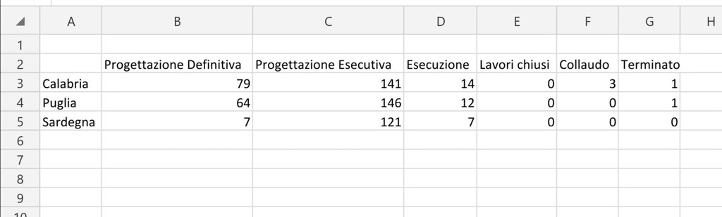 A me sembra davvero ridicolo, guardando nel dettaglio la Sardegna, che in quasi 2 anni italtel abbia consegnato solo 7 progetti esecutivi, possibile che questa fase sia così lunga? Spesso e volentieri dura più del lasso di tempo massimo imposto da infratel, voi che ne pensate?