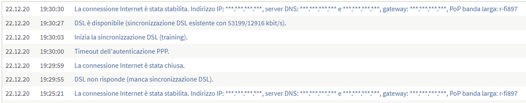 Questo è il log che ad ogni disconnessione scrive. Raramente appare anche un "Errore PPPoE: timeout".