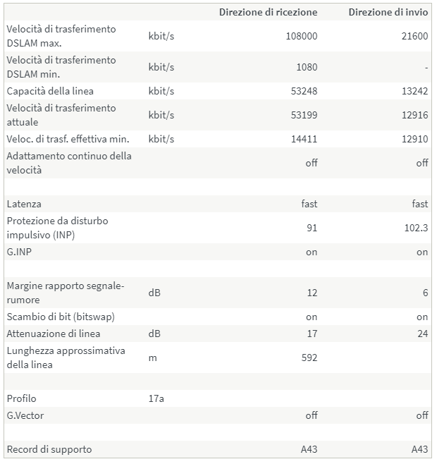 Ovviamente in tutto questo le disconnessioni continuano, nel mentre che vi scrivo questa frase si è disconnesso due volte una di fila all'altra, non so più veramente cosa pensare e cosa fare. Allego screen dei dati che potrebbero esservi d'aiuto.