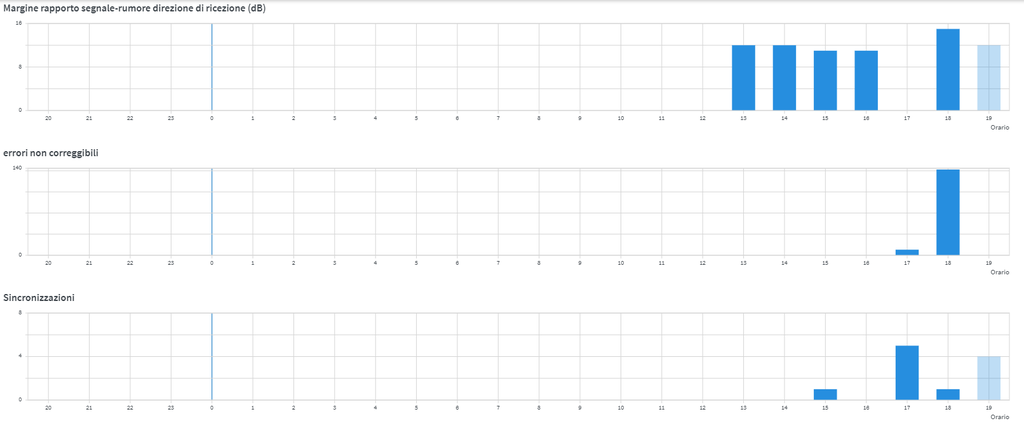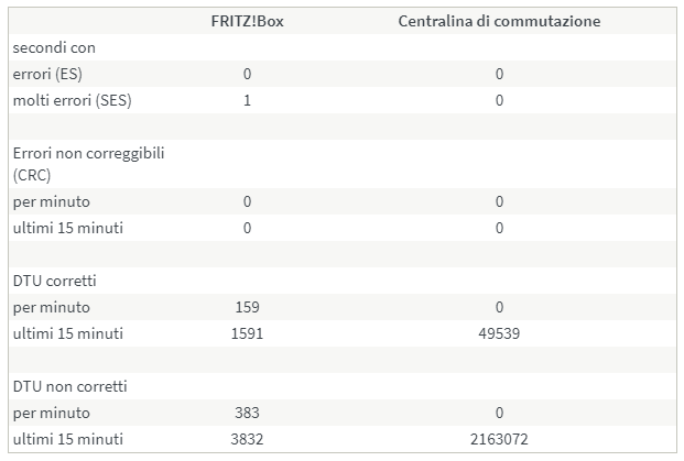 In questo screen vedo molti DTU non corretti da parte del Fritz e della Centralina, ma non è sempre così, ci sono momenti in cui è 0 per la centralina e 0 per il Fritz, e a vedere sono i momenti in cui la rete regge di più