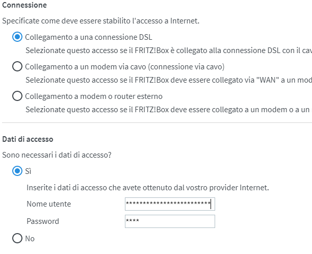Utente e Psw li ho già trovati configurati nel Fritz, come utente ho un "similguid@00000.agcombores.unica". Ho provato a utilizzare la combo "numero_telefono" con "timadsl" oppure "aliceadsl" con "aliceadsl", se avete altro da suggerirmi ditemi pure che provo.