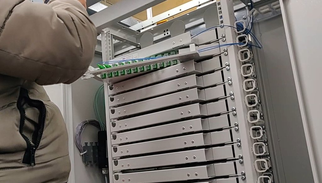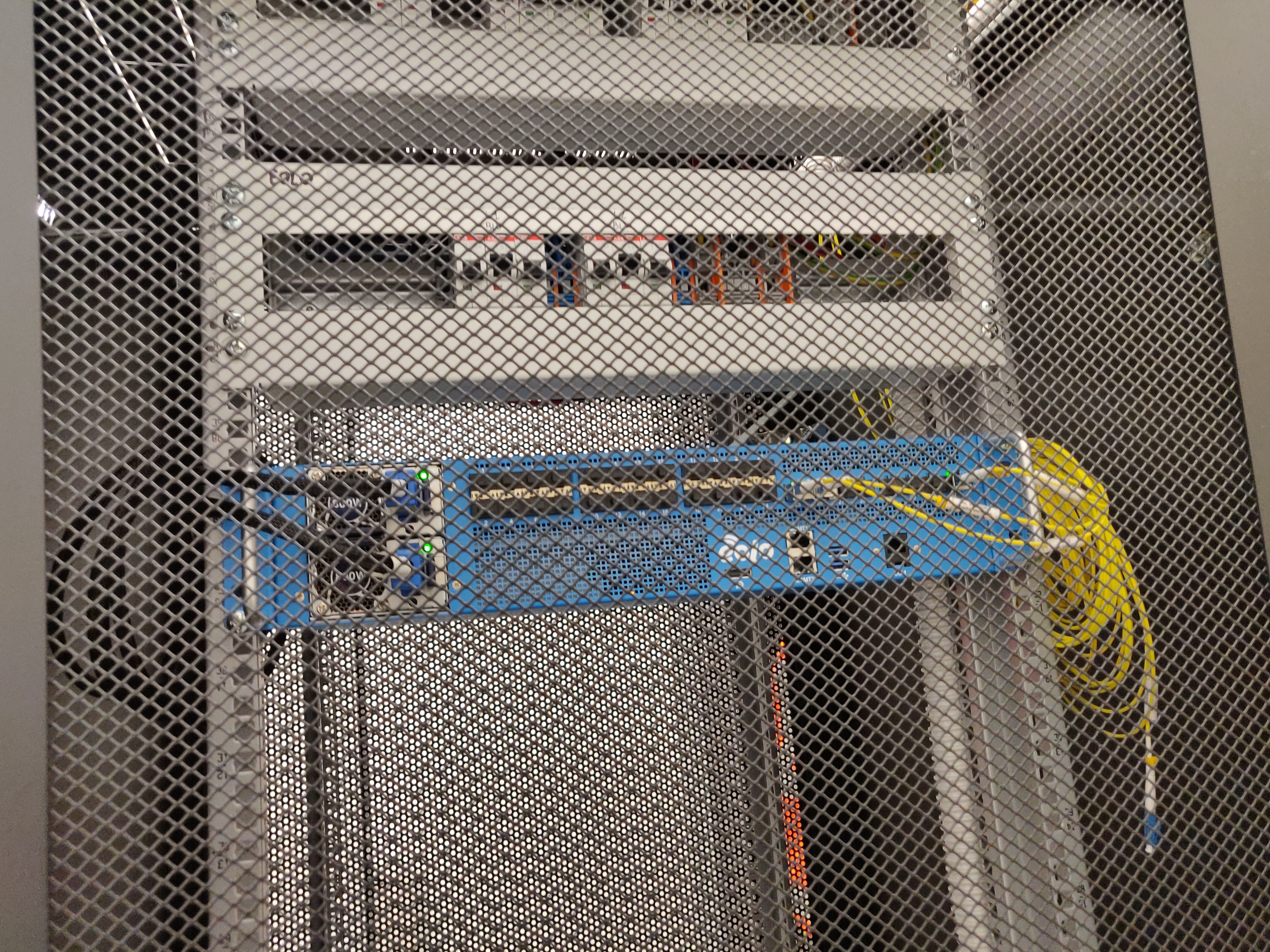 Nei rack sulla destra ci sono gli apparati della rete BUL e di Open Fiber. Questi sono i cassetti ottici dove arrivano le fibre ottiche della rete pubblica primaria: