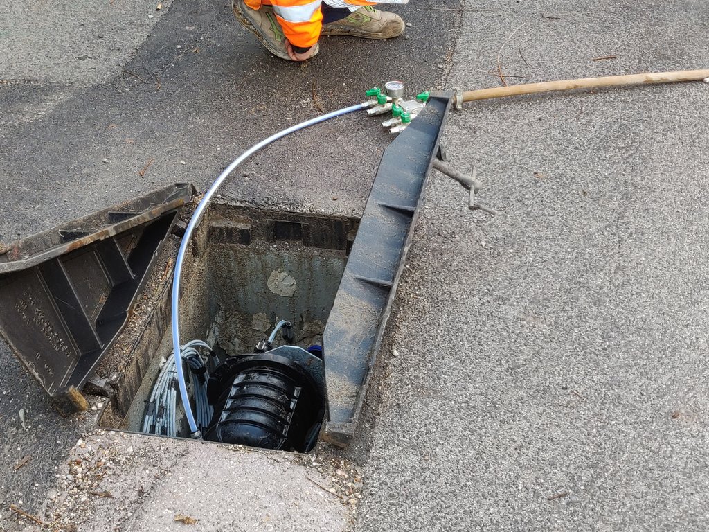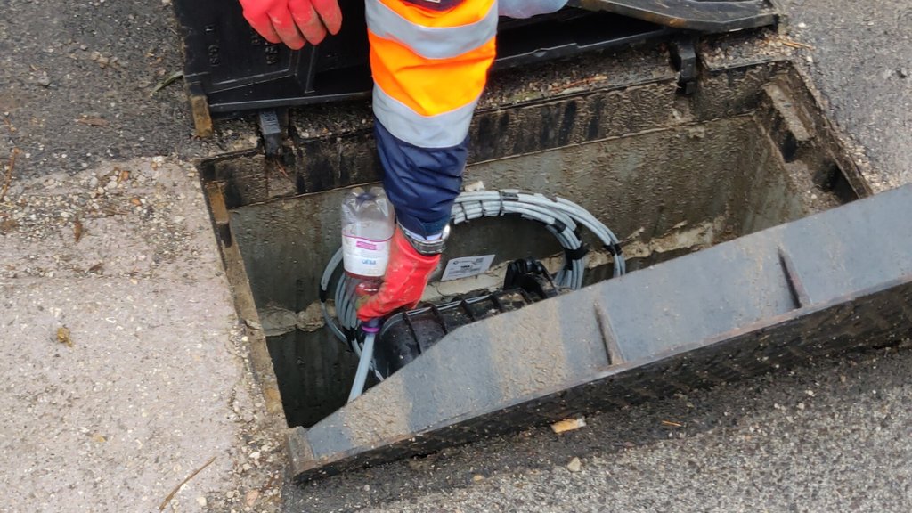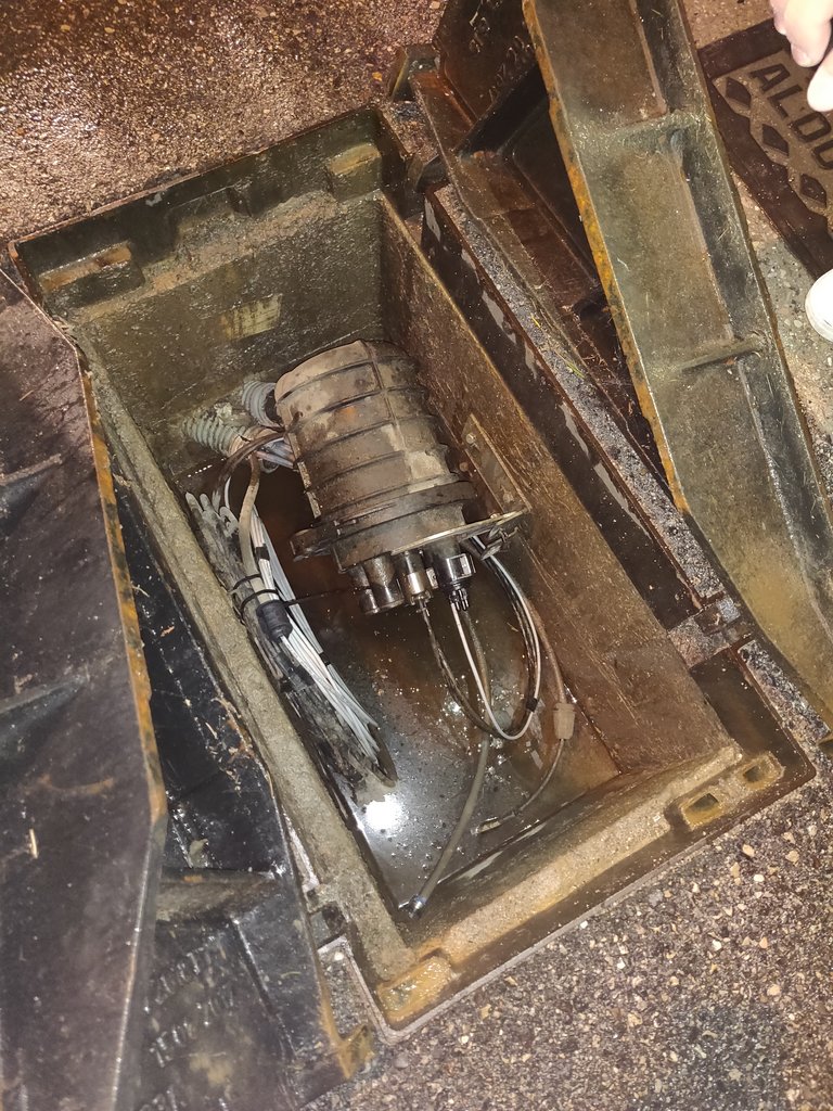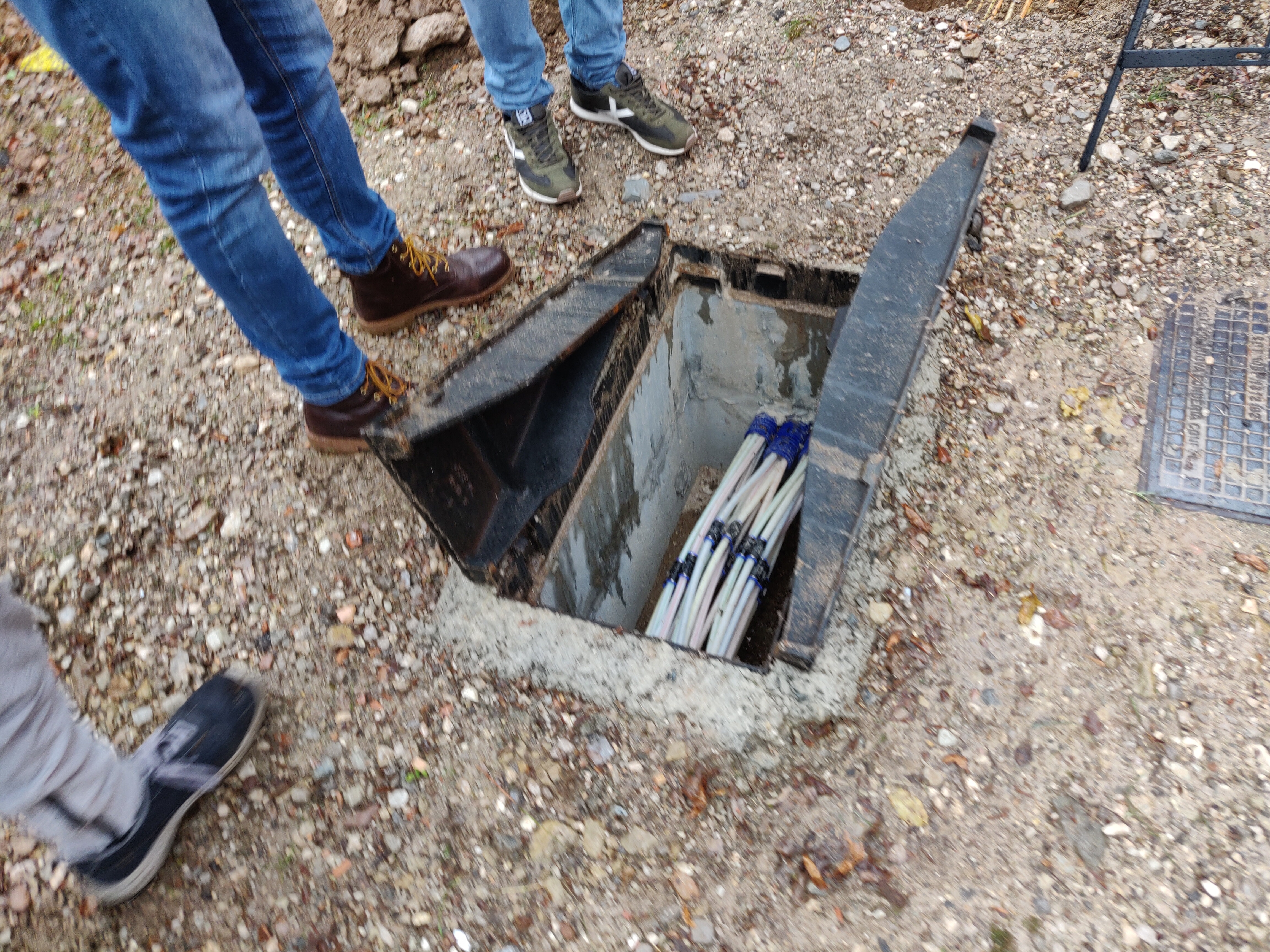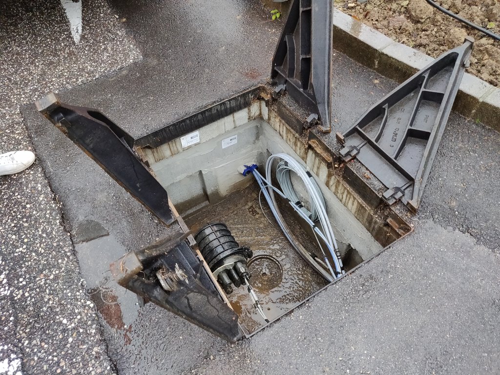 In basso a destra sulla sinistra vedete il cavo in fibra ottica della tratta primaria (che va verso il giunto comunale), mentre a destra si vedono i tubi per la fibra ottica già splittata che va verso i "ROE" e quindi verso le abitazioni.