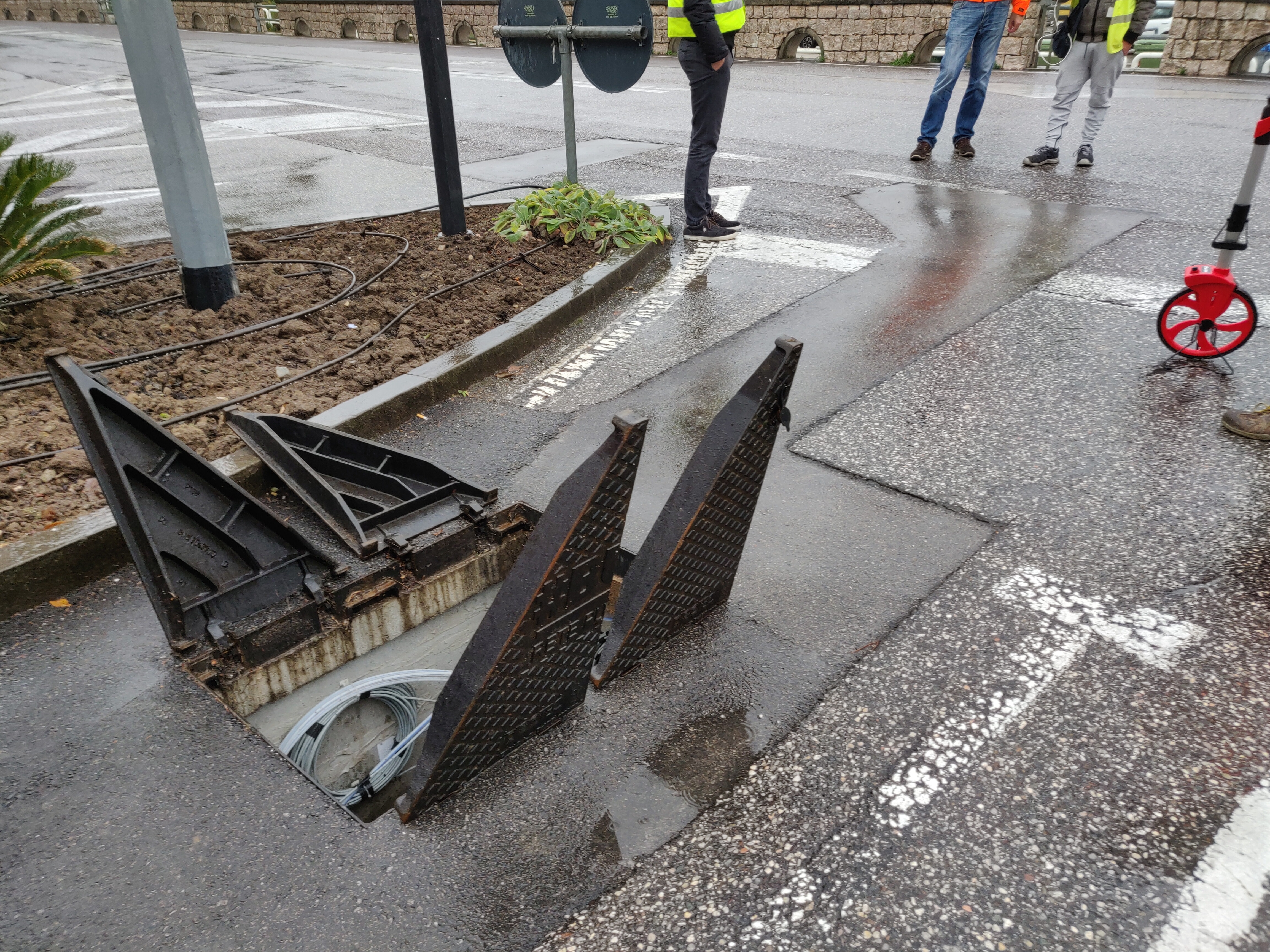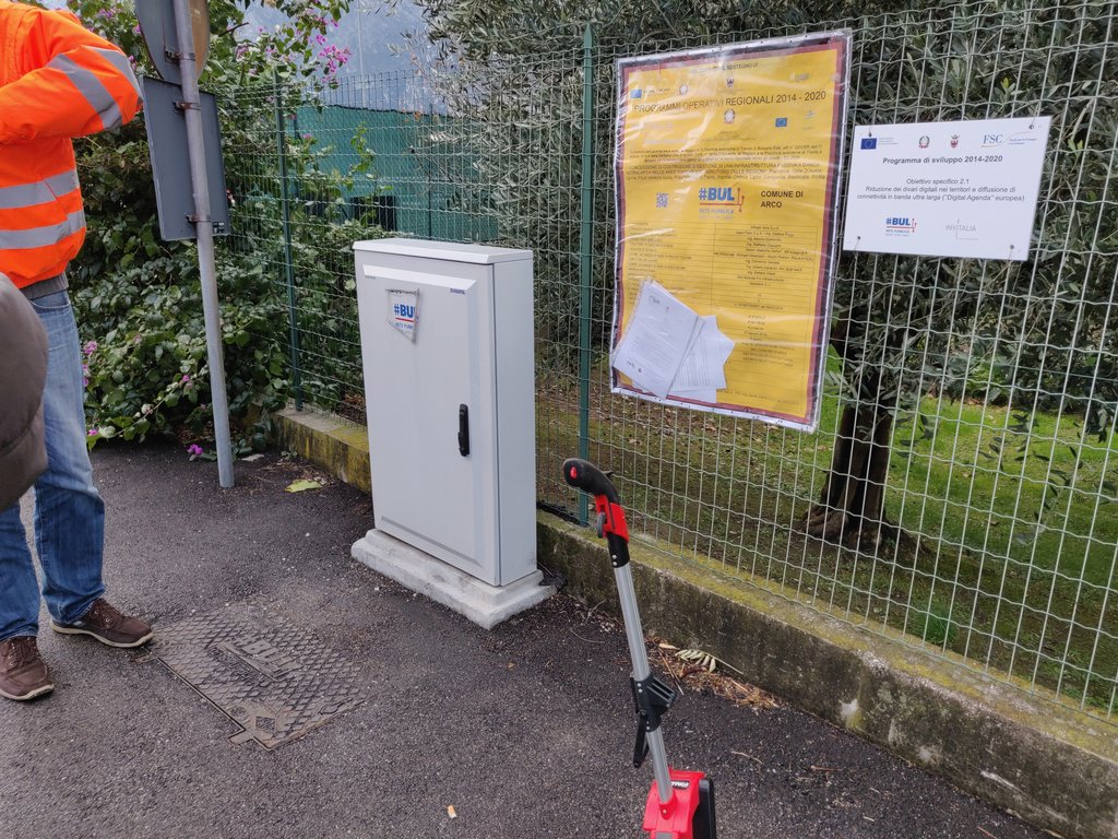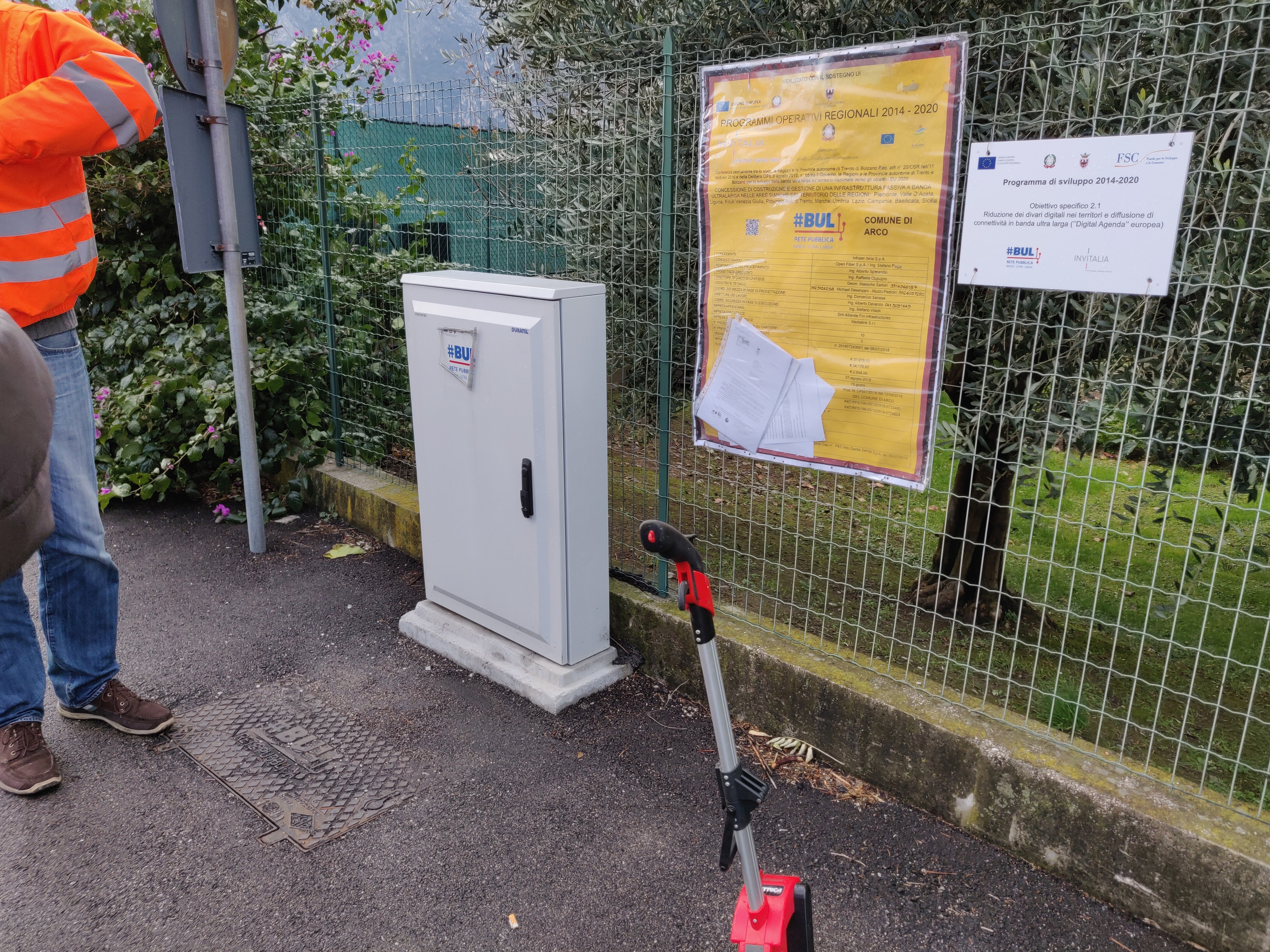 Si esce, e si inizia a verificare la tratta che dal PCN porta verso una BTS e se ho capito bene anche verso il confinante comune di Tenno. Il comune di Riva del Garda, dove si trova il PCN, non ha né avrà un progetto FTTH. Sarà coperta una frazione in FTTH tramite il progetto di Tenno, mentre l'FWA sarà realizzato tramite 3 BTS FWA.