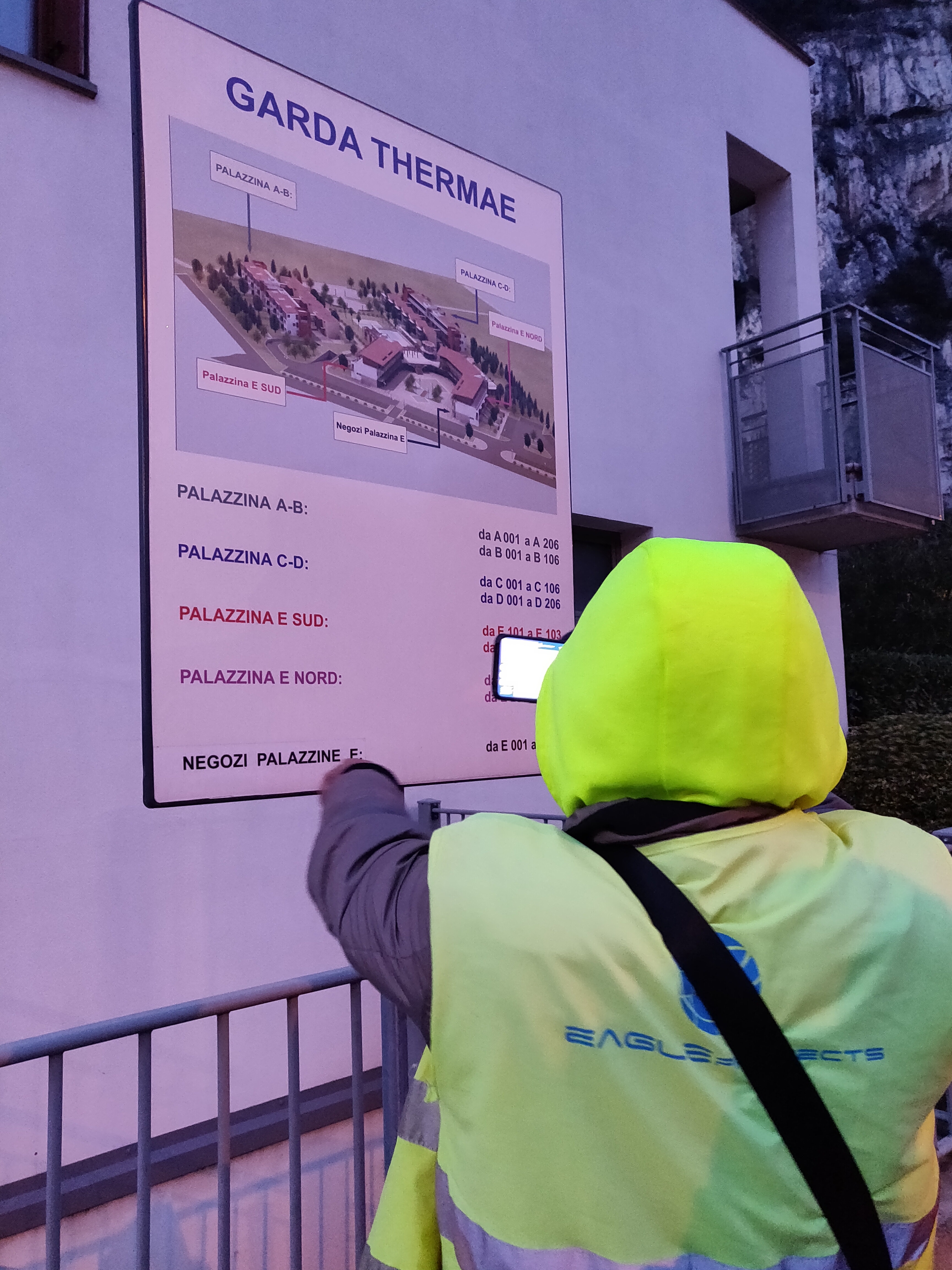 L'addetto di Eagle Project, Roberto, indossava degli occhiali stile "Google Glass" collegati ad uno smartphone. Non sono autorizzato a pubblicare foto dove sono riconoscibili persone purtroppo, quindi cercate su Google 🙂