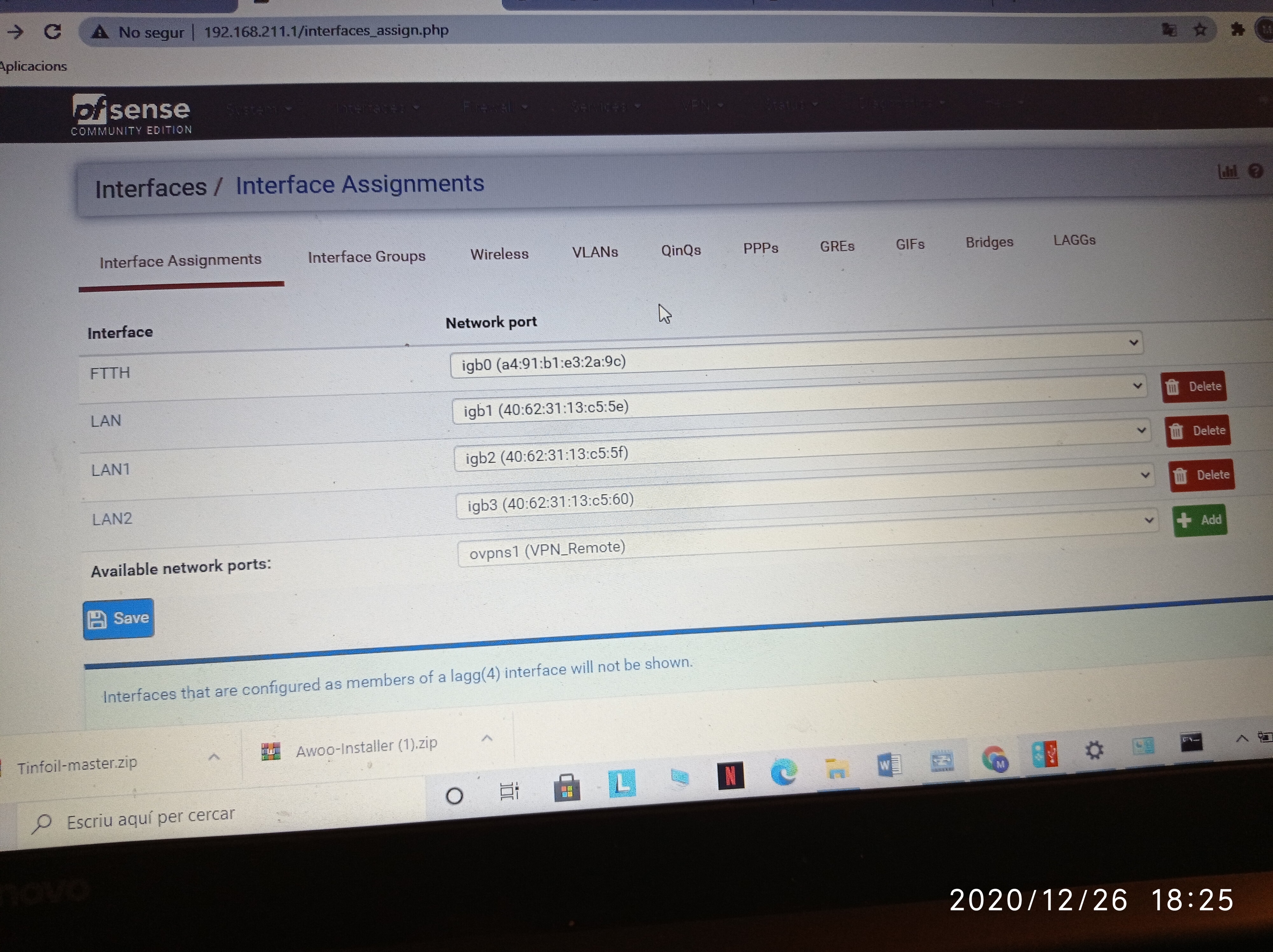 Se ricadi nel secondo caso dove usa una VLAN la soluzione più semplice è avere l'interfaccia "WAN" senza VLAN per raggiungere comunque la pagina di configurazione dell'OLT. Poi devi creare una nuova interfaccia in Interfaces - VLANs e gli assegni come "parent interface" la WAN. A quel punto la aggiungi come nuova interfaccia in "Interface assignments" e su quella fai la configurazione DHCP per Fastweb.