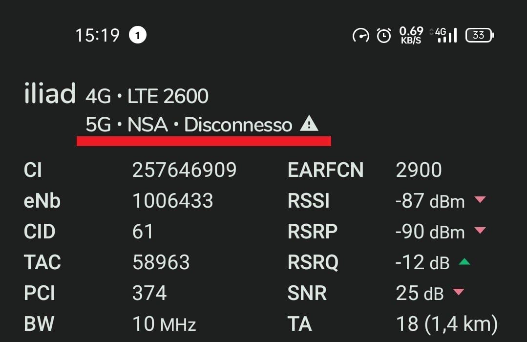 cristopher99 [cancellato] Mi confermate su questa bts ci sta il 5G attivo? Da pochi giorni spunta anche questa altra voce che ho sottolineato in rosso sullo screenshot. Significa che ULI è presente ma, per qualche motivo, non c'è/non è accessibile il segnale 5G