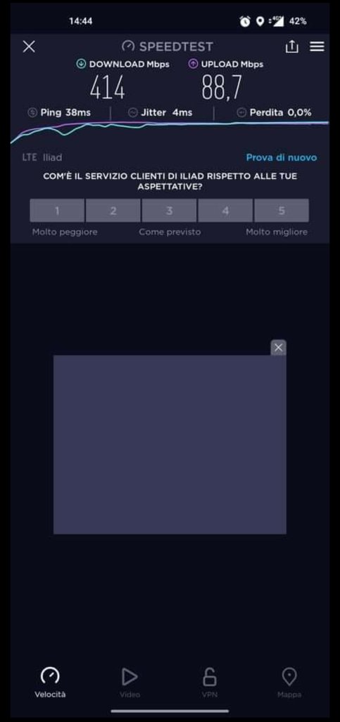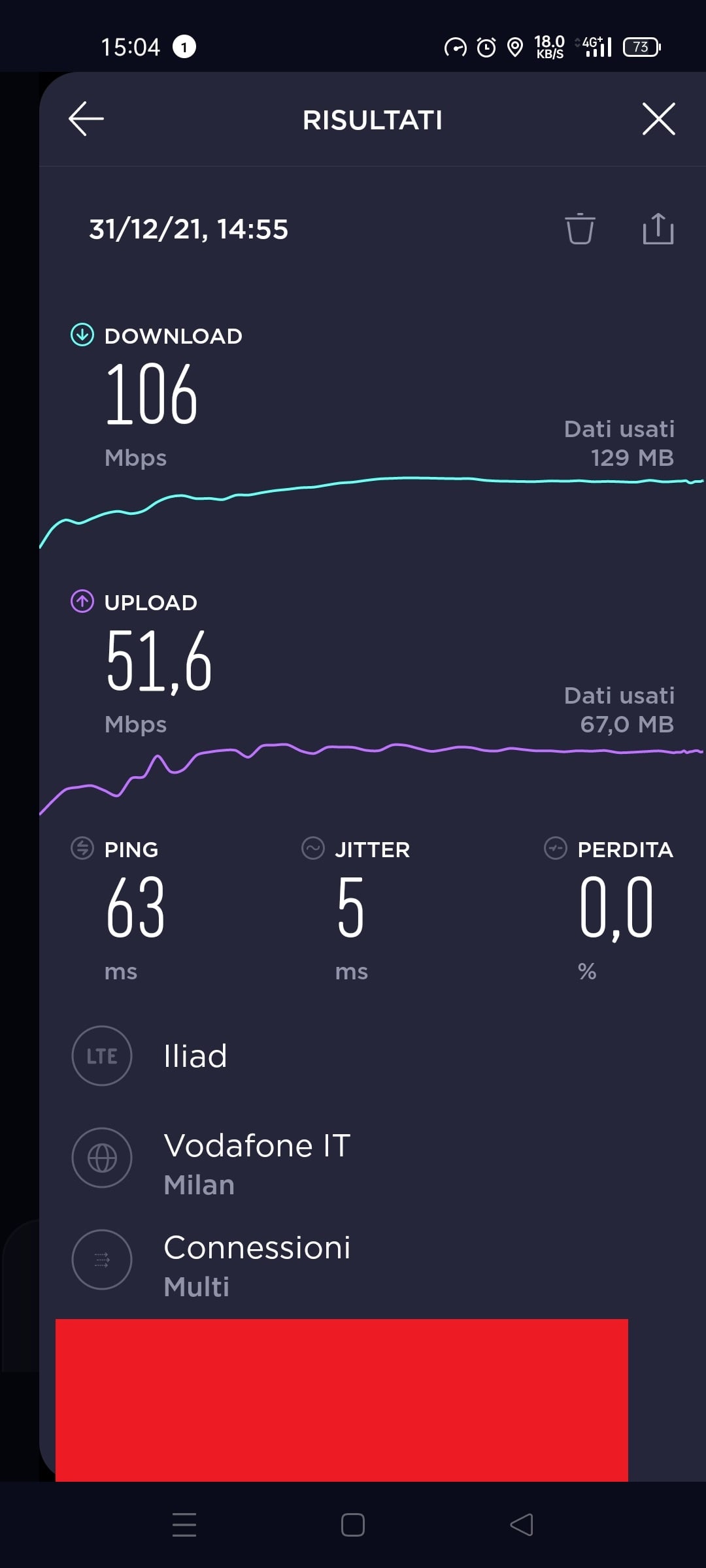 handymenny Camel90 Con 90 in upload non c'è nemmeno da chiedere. Serve aggregare 3 bande iliad per ottenere quell'upload, cosa praticamente impossibile. Probabilmente la rete avrebbe fatto anche di più, ma iliad sulle sim 4G è limitata a circa 400Mbps (teoricamente 450)