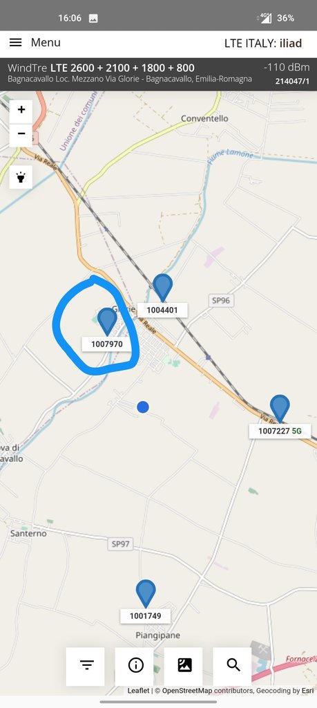 Sam81 Camel90 quando ritorno in zona faccio le verifiche del caso però ho guardato nelle vicinanze non ci BTS windtre solo Tim Vodafone e Iliad