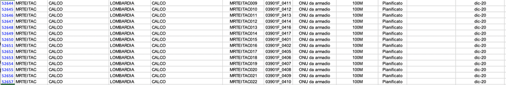 Dato che nel foglio Excel del portale Wholesale di TIM non ho trovato riferimenti al paese di Olgiate Molgora suppongo che i cabinet siano quelli pianificati come Calco (paese limitrofo).