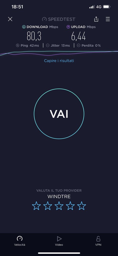Praticamente ecco allegati i 2 test fatti adesso stesso orario uno di iphone 12 pro max sim windtre in casa e uno da sim windtre antenna sul tetto modem fritzbox 6890 lte