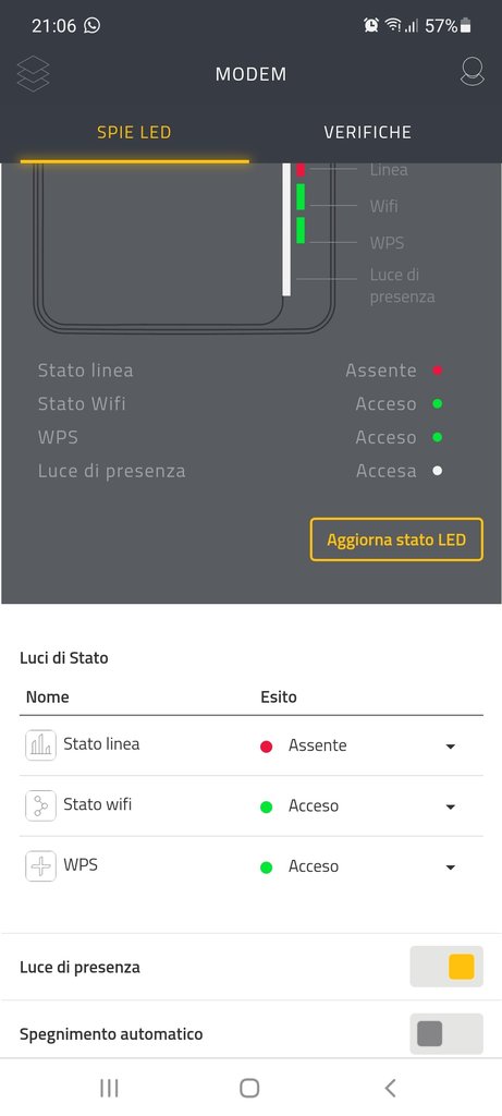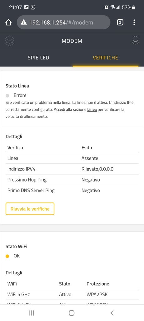 rieges Squalapio stato wifi si Si riferisce alla rete WiFi che funziona (non serve che sia connesso a internet per funzionare correttamente). Squalapio ipv4 rilevato No. Il Fastgate ha "rilevato" l'IP 0.0.0.0 che è se stesso ovvero il nulla cosmico. Finché non ha un valore diverso non farci caso. Squalapio Ciò mi lascia pensare (ma magari mi sbaglio in quanto ignorante in materia) che la linea non è del tutto assente, cioè sta cercando in un certo senso di "allinearsi". Purtroppo dal Fastgate non si vede questa cosa. Se hai un modem potresti attaccarlo per vedere se almeno riesce a instaurare la connessione VDSL (FTTC).