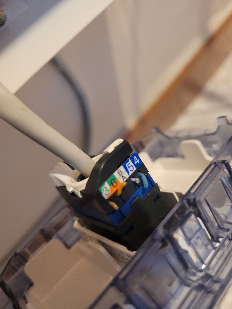 Approfittando del fatto che l'elettricista è venuto per il sezionamento dell'impianto ho deciso di eliminare l'rj45 femmina-femmina e di inserire il cavo ethernet nella cassetta rj45 in modo da avere un servizio più "pulito" dietro la scrivania. Il problema sta che dopo aver installato la cassetta rj45 a muro (preciso che è sempre lo stesso cavo ethernet di prima solo che ora l'ho fatto inserire nella cassettina) la velocità di donwload si è dimezzata assestandosi intorno ai 90. Avete qualche soluzione?