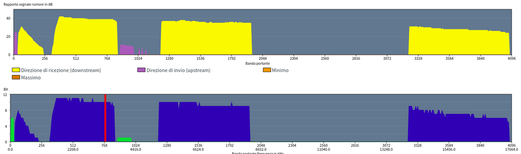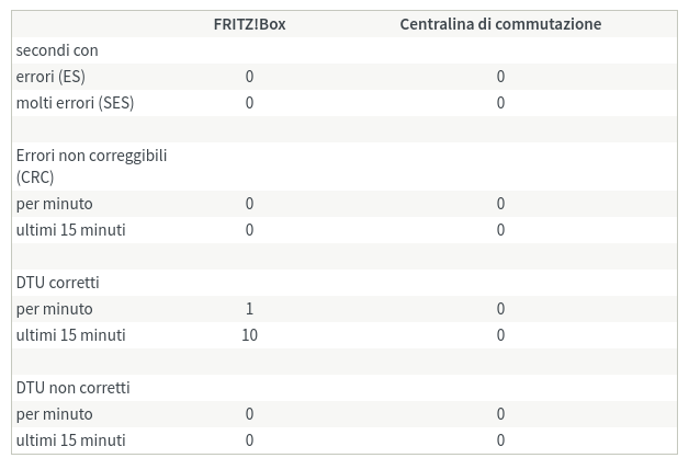 - Sulla linea DSL è stata rilevata un'interferenza dovuto ad un cablaggio non corretto. Verificate se ci sono deviazioni o più distribuzioni sulla vostra linea. La deviazione ha una lunghezza di 10 metri. Questa deviazione provoca una perdita di circa 5005 kbits/s.