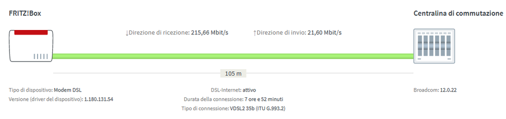 Filippo94 AdrianoBalestri ora non sei limitato da Tim, ma dai tuoi vicini che fanno un po’ di interferenza. Se ti metti a riavviare o smanettare e generi errori sulla linea, Tim crede che sia una linea instabile (giustamente) e ti attiva profili a 12 decibel e ti ritrovi a 50 mega o 30. Hai una linea perfetta, lascia il FritzBox sempre acceso che faccia il suo lavoro e attendi semplicemente che possa attivare la 200, non fare nulla di più e lascia gestire tutto al FritzBox 😊