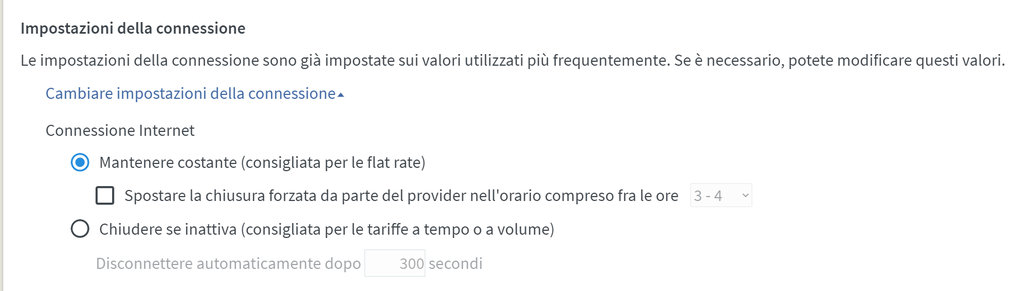 Filippo94 LucaTheHacker Prova ad andare nel menu a sinistra in Internet, dati di accesso, poi in alto accesso a internet, apri il menu Cambiare impostazioni della connessione, mantenere costante