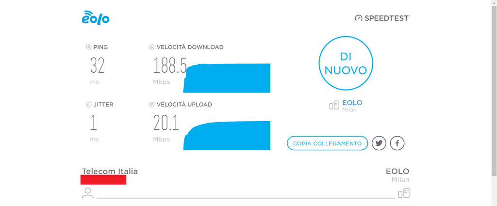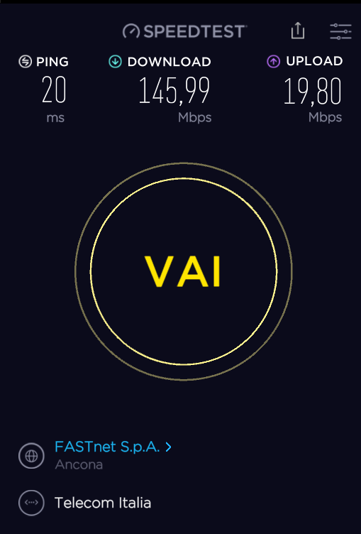 [cancellato] Eccomo come va. L'fttc Tim 200 mega attiva da giorno 18/01/2021. Tutti i test sono stati fatti con cavo lan di categoria cat 6 con router 7590.