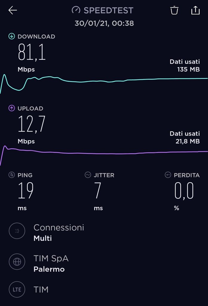 [cancellato] GiovanniLombardo Male non hai fatto di notte sto sui 80 / 90 mega di giorno sui 10 mega ma tanto sto sempre in fttc.