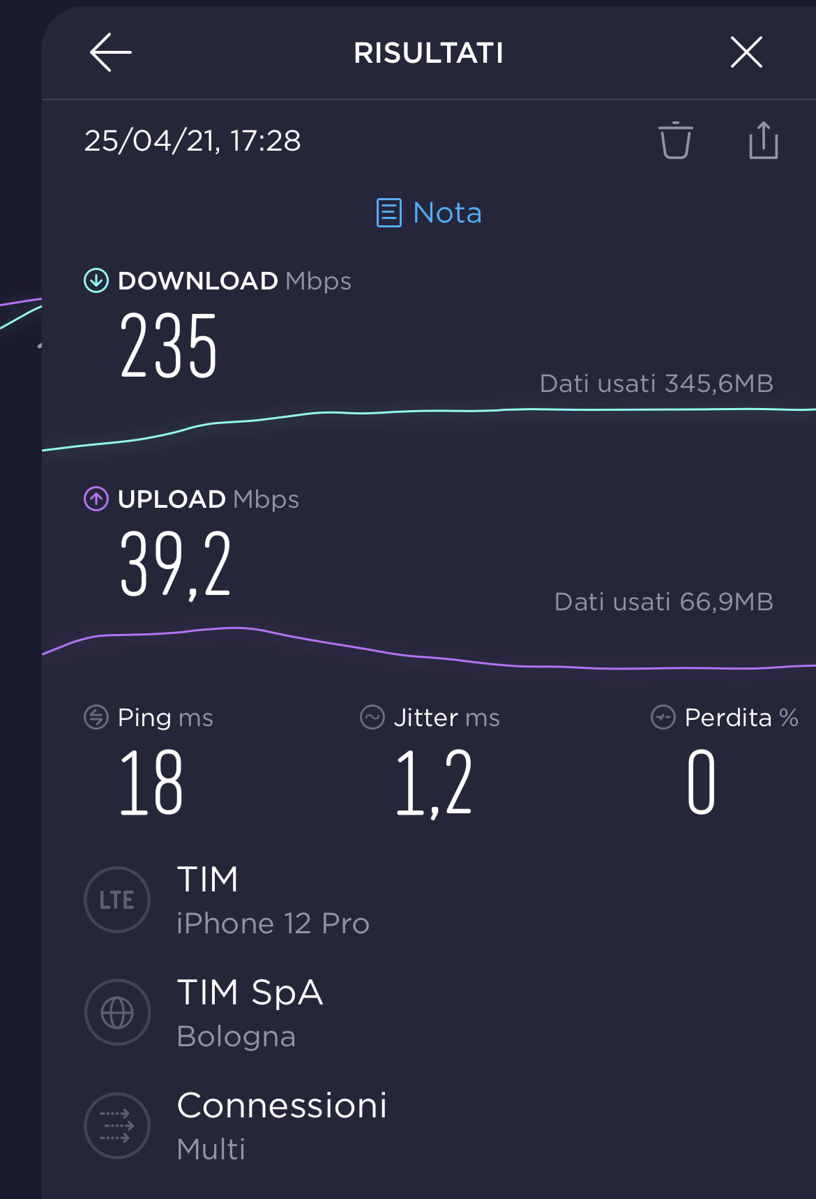 MattCross Tim unica su tariffa con cap a 150mb pero purtroppo non credo si possa raggiungere molto di più in zona forse Milano Roma Napoli hanno un po’ piu di spunto vedo dei 300mbps, spero mi smentirete, ma Speedtest da più di 600mbps in su in Ita li ho visti fare solo con 5g !