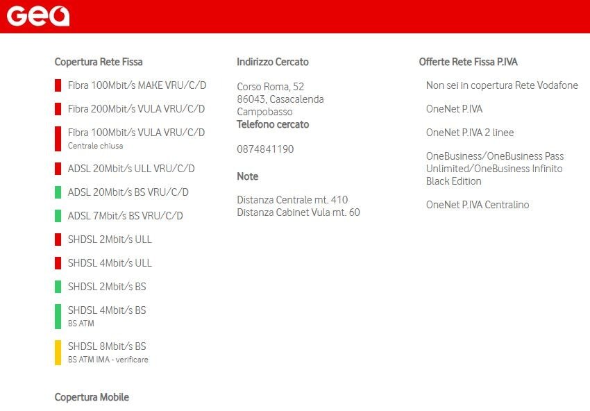 3) Vodafone. Solo ADSL. Il controllo su Gea mi restituisce:
