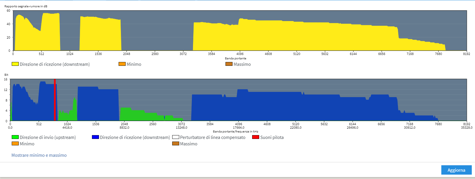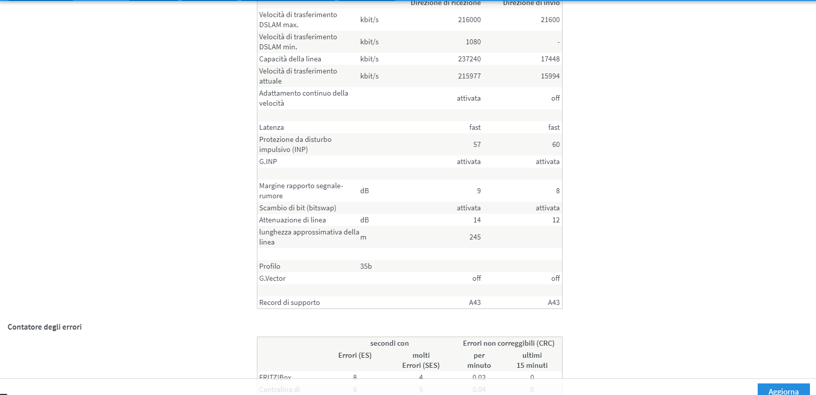 BiaSoo Ho risolto, ieri sera alle 10 e mezza mentre stavo usando il pc noto che si stacca internet, controllo il modem e si stava riavviando. Poco dopo controllo e leggo 216 in download e 16 in upload. Ora però mi chiedo, ma perché prima prendevo 21.6 in upload e nonostante un riavvio, che ieri é servito per portare l'upload da 19.4 a 21.6 come il primo giorno?