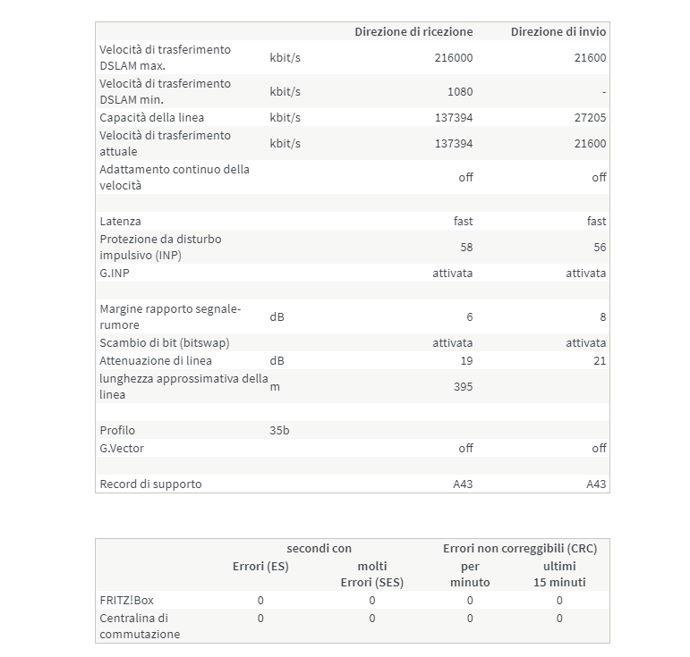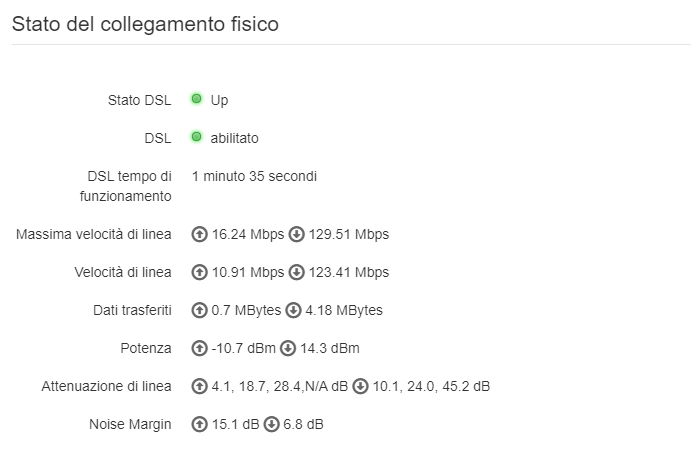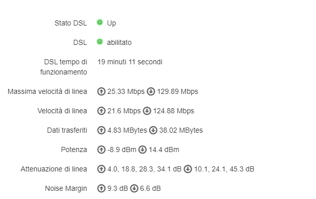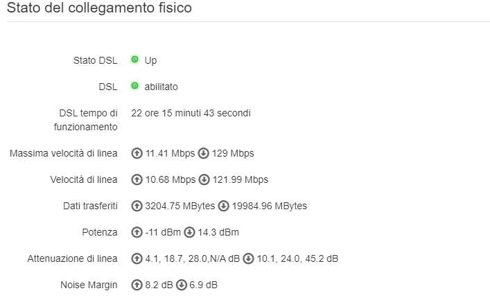 SalvatoreLentini crireal no non sto facendo nulla , lunedì c’è stata una botta assurda di temporale , tutto il vicinato e stato senza linea per 3 ore , per poi ritornare , e da lunedì che si disconnette da solo una volta al giorno , non solo a me ma a tutto il vicinato. Comunque non ho power line, il modem è collegato alla presa principale come sempre Allego uno screen statistiche @Hadx