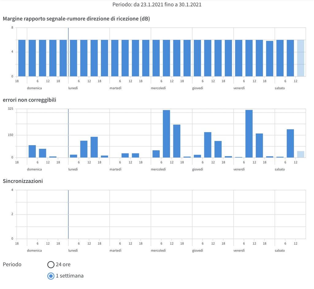 Premetto che fino a poco fa l’altra FTTC che avevamo presentava qualcosa come una 30 di crc al mese ma era una 30/3 ed era su un’altra coppia. Stavo pensando di mettere il 7530 sotto UPS, potrebbe essere la scelta vincente?
