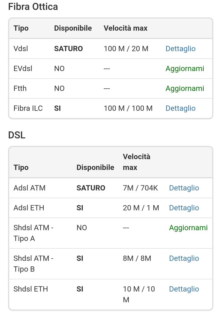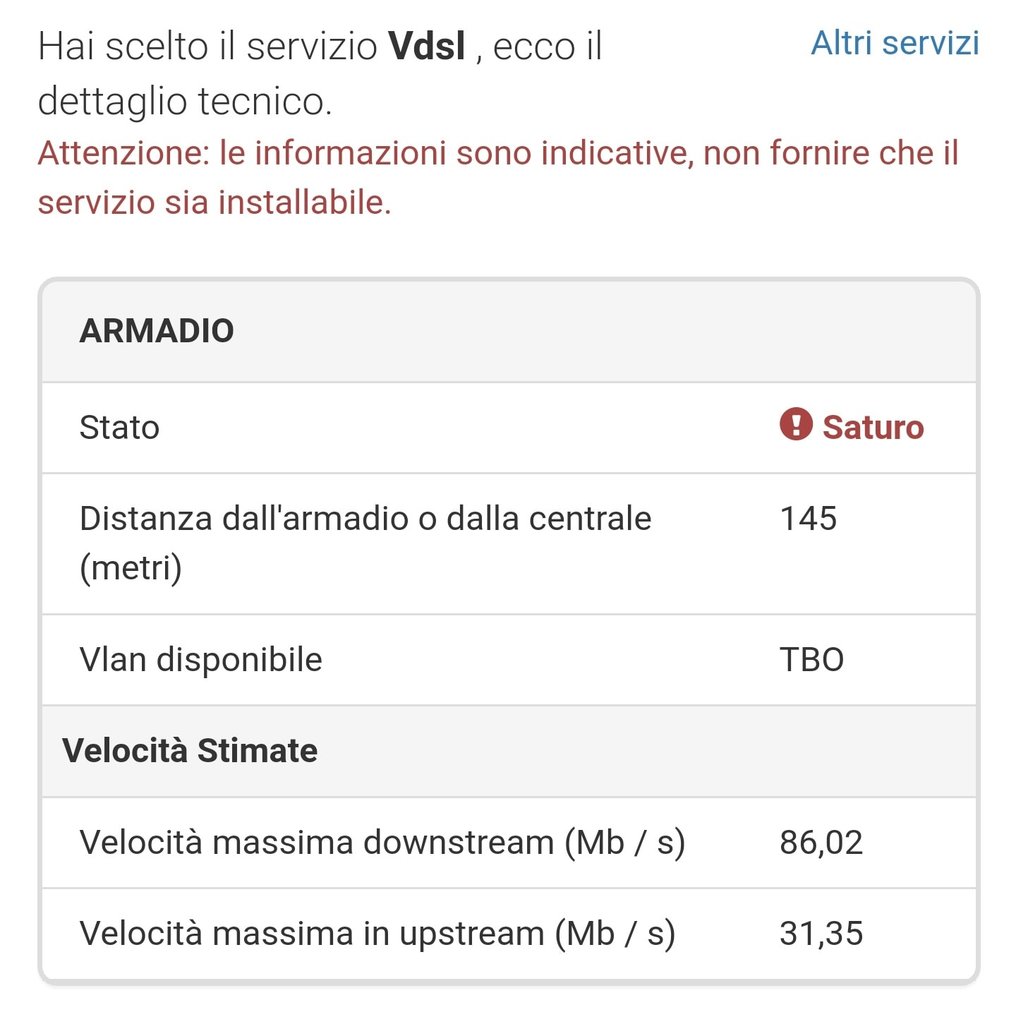hanno ultimato i lavori per la fibra (FTTC) nel mio piccolo paese. Utilizzando vari siti di verifica copertura fibra risulta cabinet saturo (ma hanno terminato i lavori circa 1 mese fa).