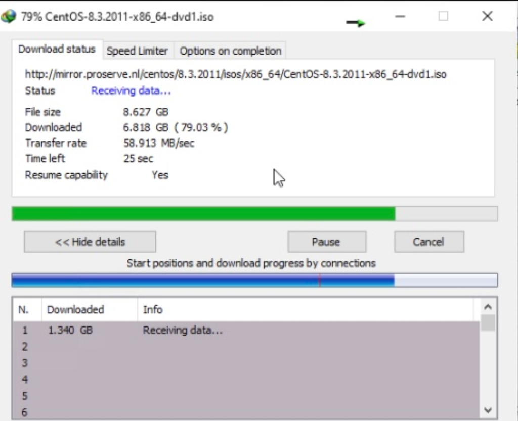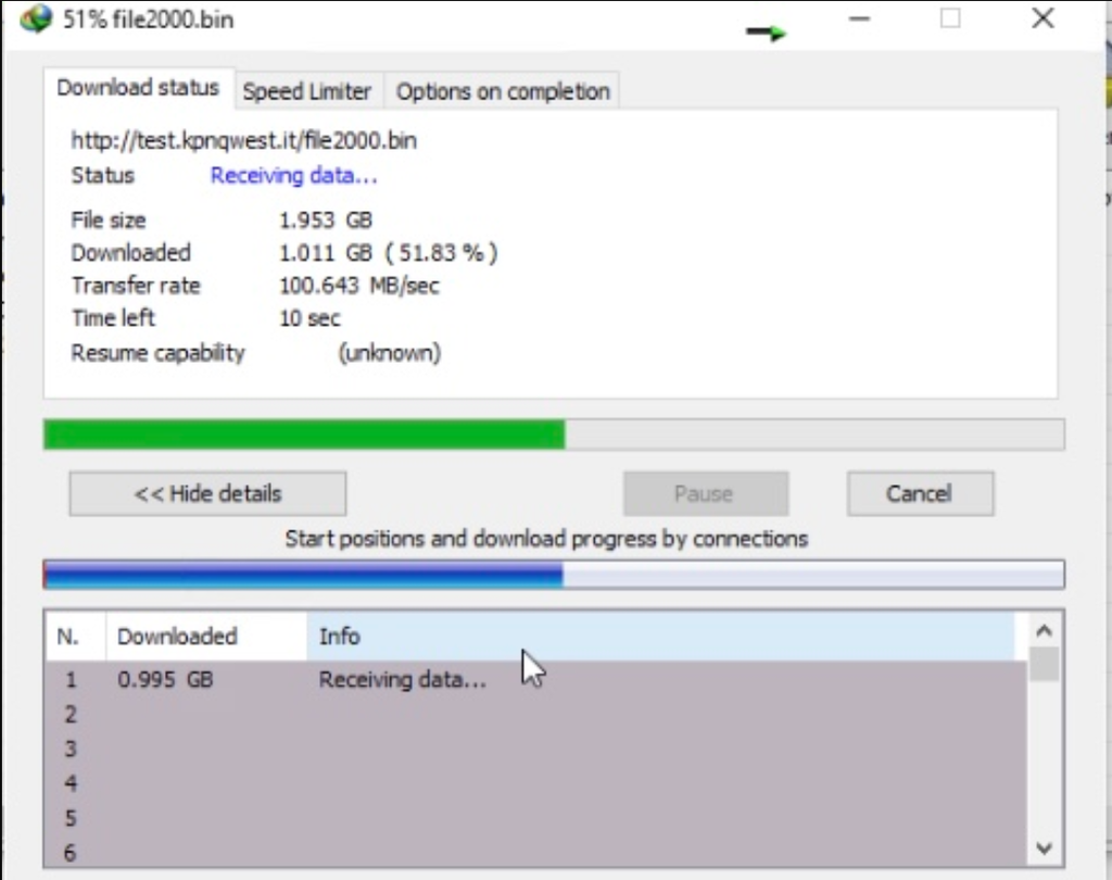 Questa invece è una pessima connessione, visto che cambiando la posizione del server (ovviamente scegliendo posti con un interesse da parte degli ISP, tipo amsterdam) da cui si scarica la velocità si dimezza (screen non miei).