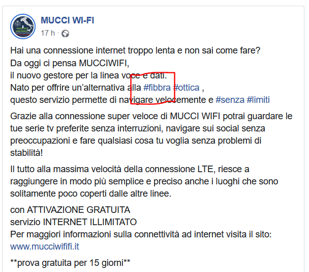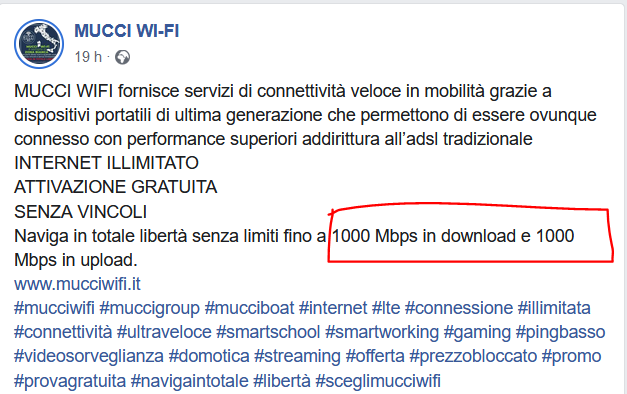 mb334 niceguy12 Non ricordo di averlo mai sentito nominare sul forum, ma da un'azienda che posta questa immagine e descrive in questo modo una connessione 4G mi terrei alla larga. Poi fanno riferimento ad un connessione 1000/100 mega senza specificare come e dove... Edit: dalla loro pagine Facebook.